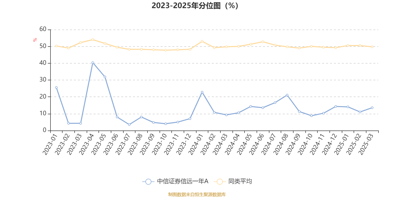 通过所选区间该基金净值增长率分位图,可以观察该基金与同类基金业绩比较情况。图为坐标原点到区间内某时点的净值增长率在同类基金中的分位数。