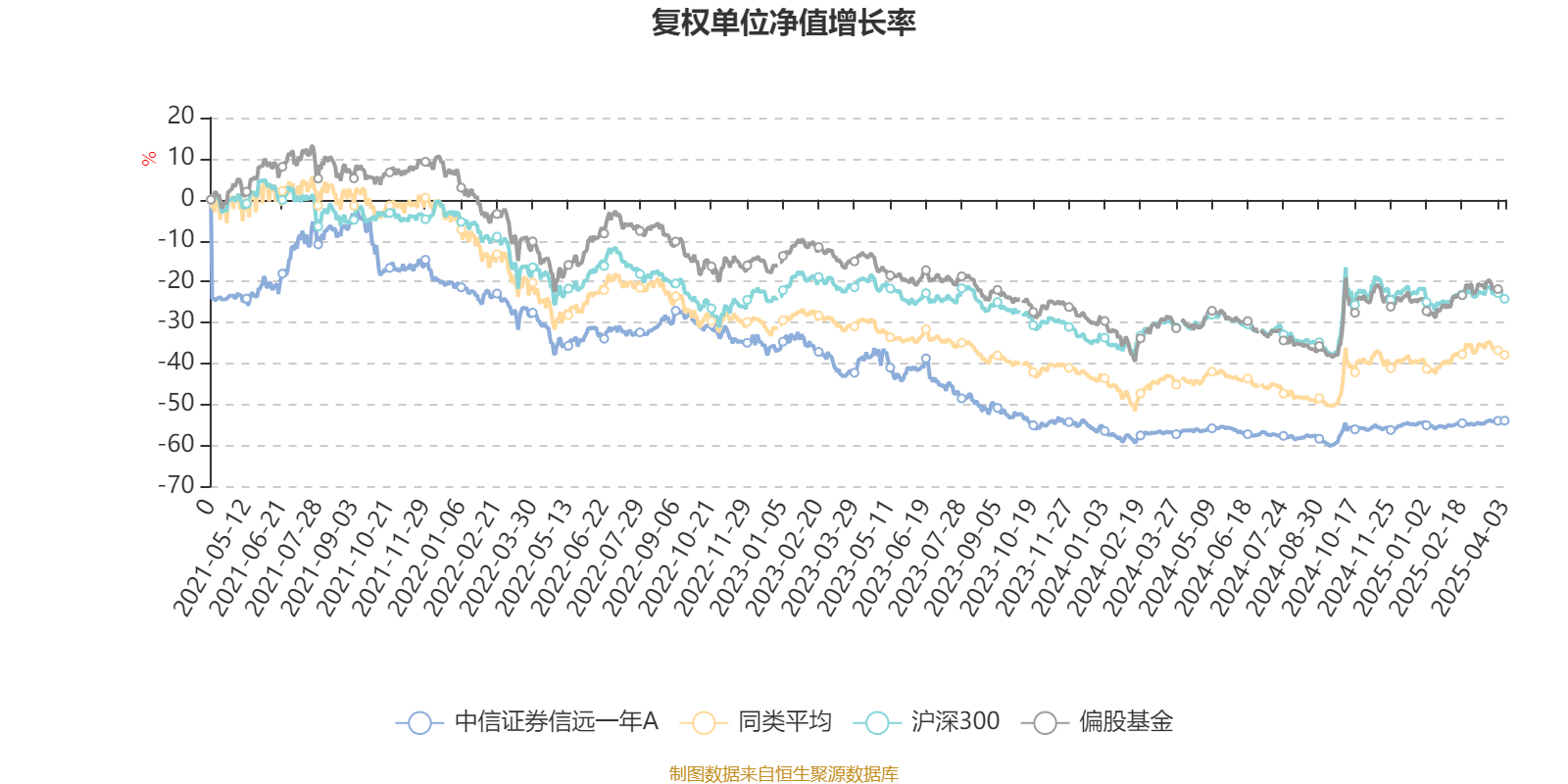 截至4月3日,中信证券信远一年A近三个月复权单位净值增长率为3.09%,位于同类可比基金369/536;近半年复权单位净值增长率为2.22%,位于同类可比基金217/536;近一年复权单位净值增长率为5.40%,位于同类可比基金313/532;近三年复权单位净值增长率为-35.87%,位于同类可比基金263/306。