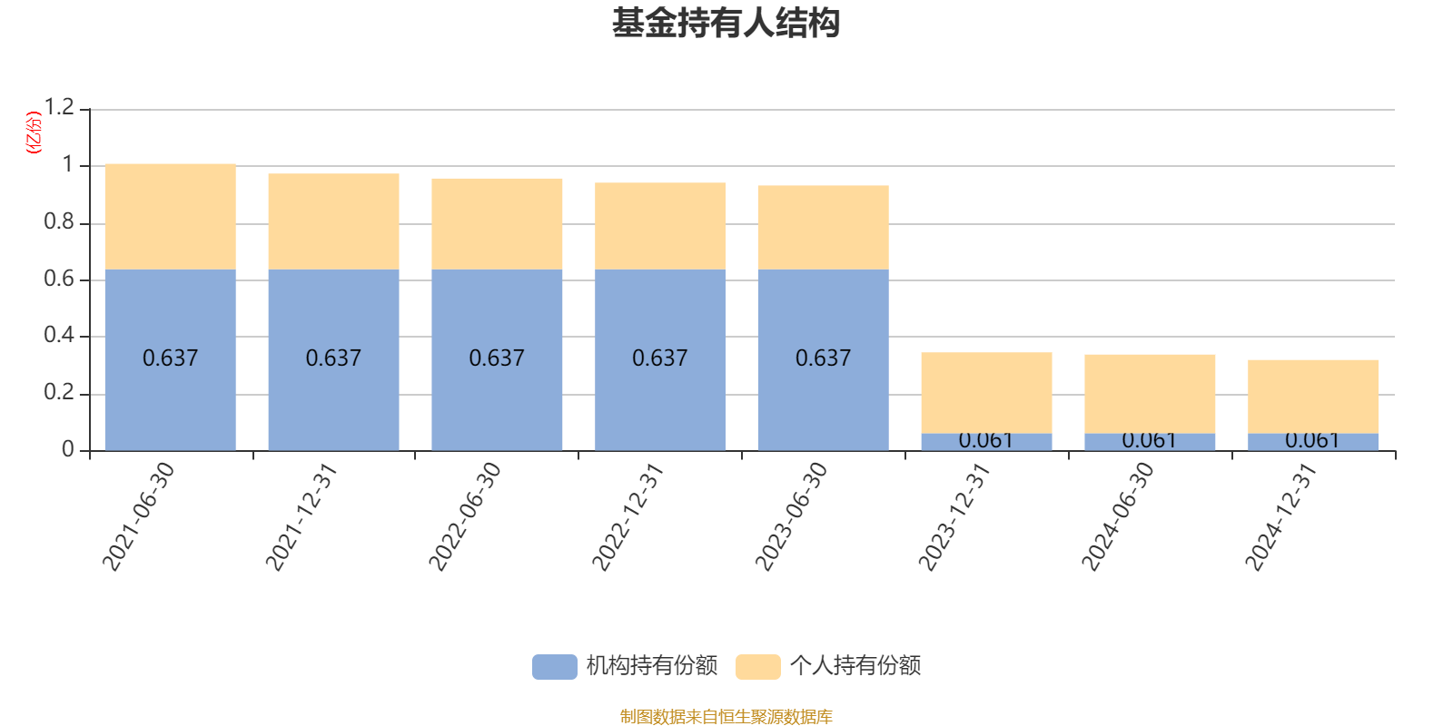 截至2024年12月31日,基金持有人共计304户,合计持有3185.64万份。机构持有份额占比19.22%,个人投资者占比80.78%。