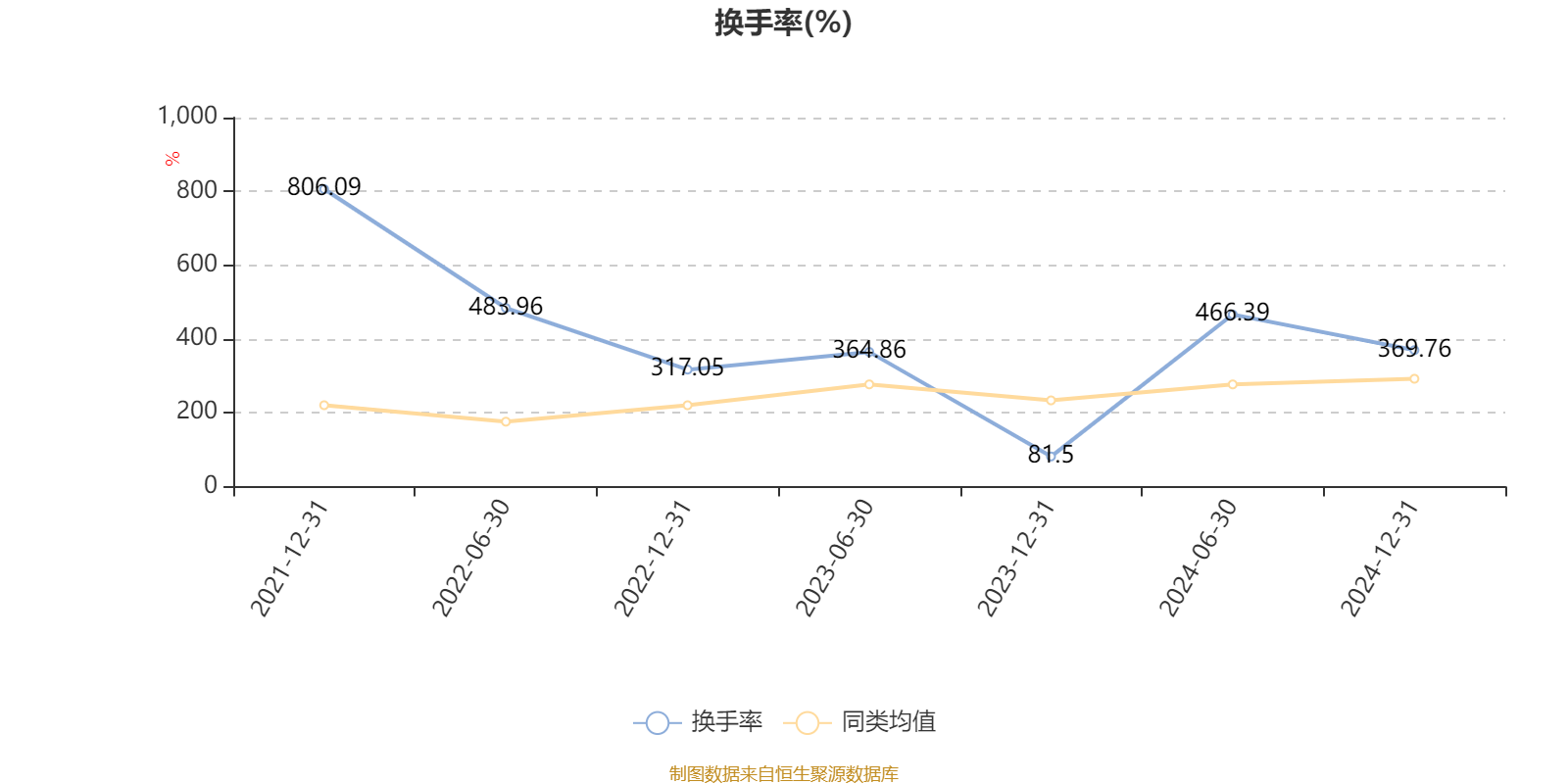截至2024年12月31日,基金最近一年换手率约832.47%,持续1年高于同类均值。