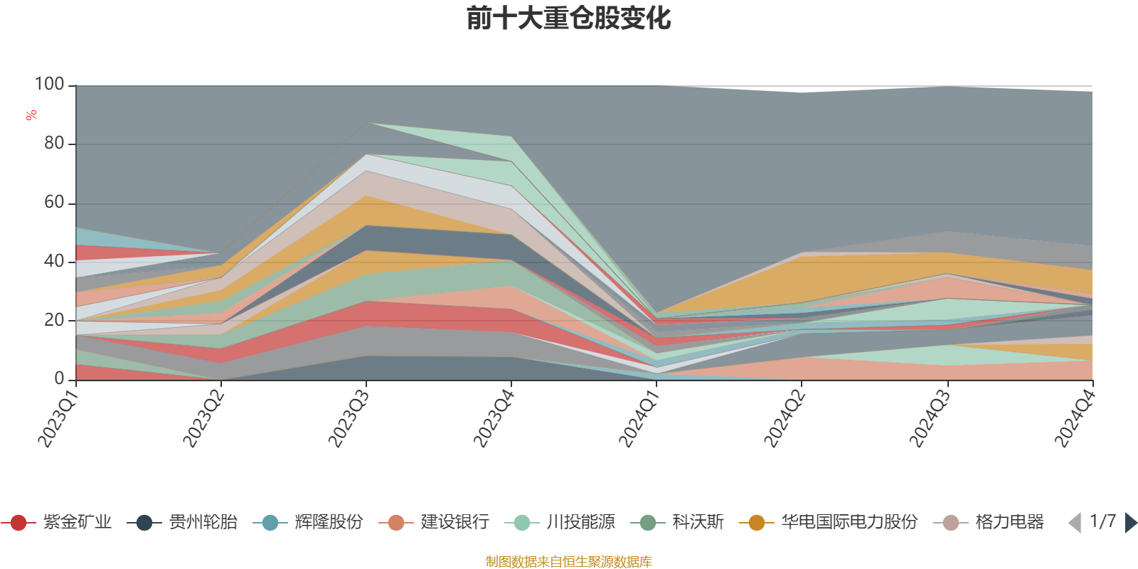 截至2024年末,基金十大重仓股分别是江苏金租、中国移动、工商银行、建设银行、华电国际电力股份、格力电器、冀中能源、长江传媒、粤高速A、华邦健康。